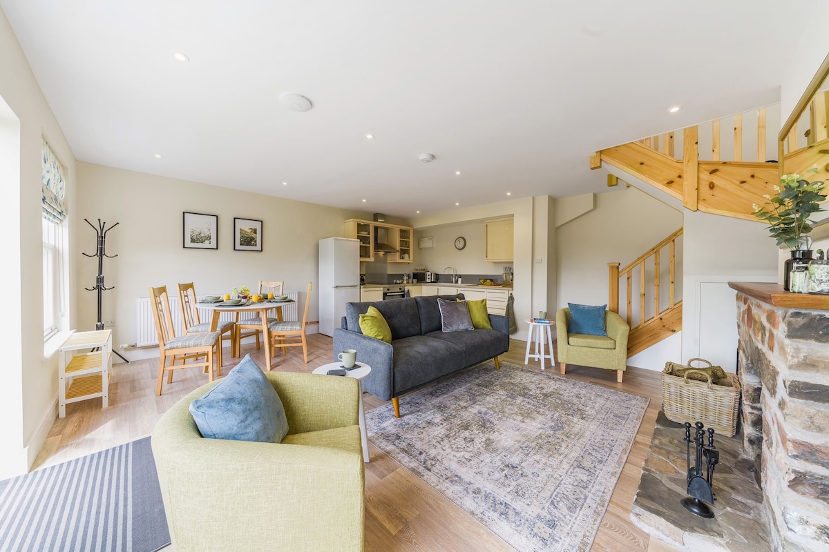 Broadeford Barn is a lovely spacious barn conversion close to the beautiful north Devon coast and excellently located for guests to enjoy the exceptional beaches of Woolacombe, Croyde and Saunton. There is a large family bedroom with a double bed and a single bed and a chair bed with adjacent bathroom. Downstairs there is underfloor heating in the well equipped open plan living room and kitchen. The accommodation is dog friendly with a dedicated field nearby for dog walking & exercising.
