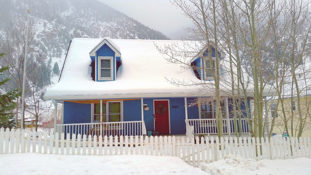 Exceptional location in Historic Georgetown, CO. ⭐️⭐️⭐️⭐️⭐️for 10yrs. Remodeled 1865 home, larger than photos show! Modern, well stocked kitchen/2 baths, 1600 sqft, 4 bdrms/7 beds, large Great Room, tons of parking *Limit of 8 adults (age 18 and over) + children, 10 person max. Weekends, weekly, or monthly visits. Great for wedding parties, Gtown Loop Rail trips, Loveland Ski Area, 13'. Historic museums and Victorian homes on every side of the property.
