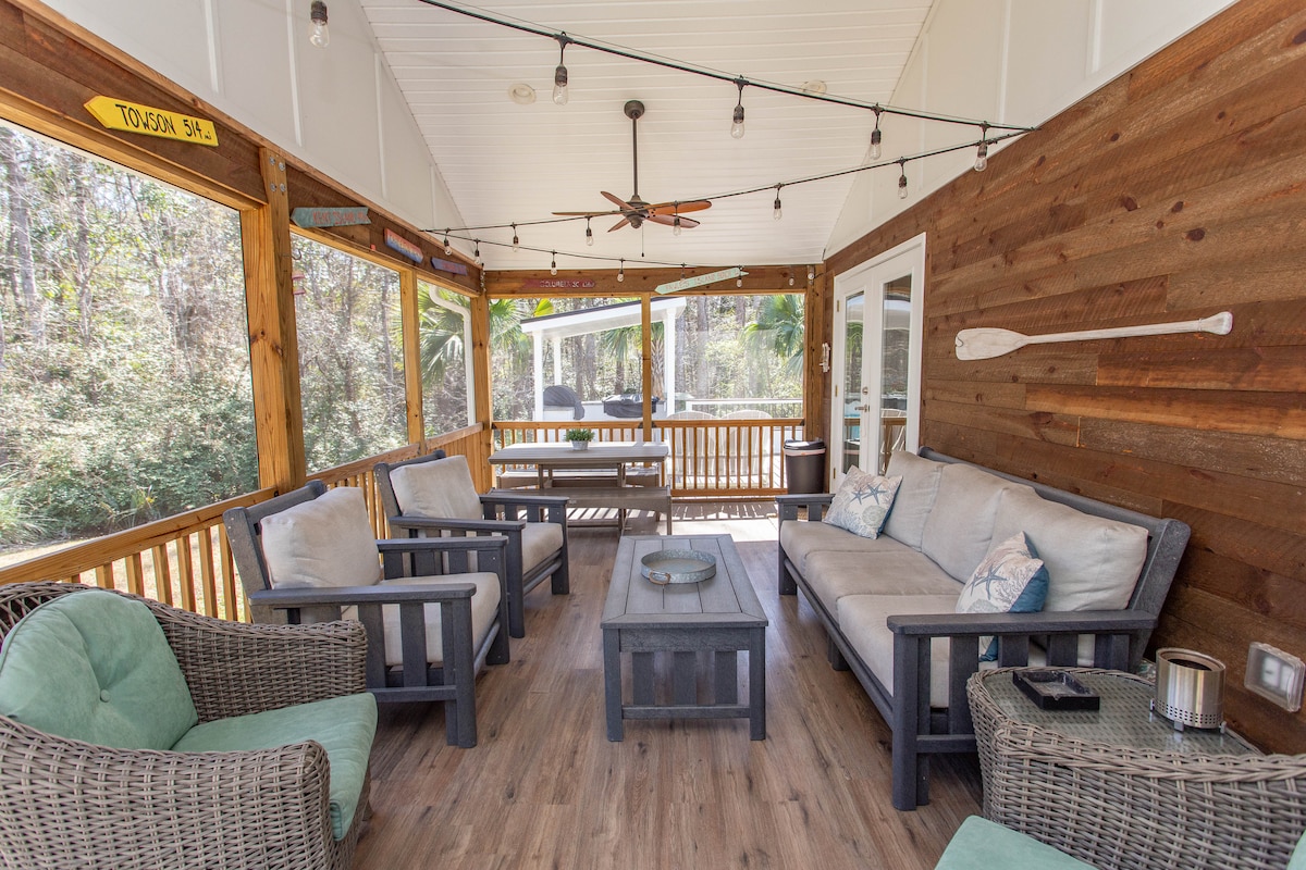The first guest comment I hear is "Wow - pictures don't do this place justice - the house is incredible and the views are spectacular! The next comment is "I thought we were way out in the country but it's only 20 minutes to the waterfront town of Georgetown, with shops, dining, museums and more. Looking to get away? This place is truly a retreat- a 3 bedroom house on the beautiful Black River in Georgetown. Four kayaks provided, swim or fish off the dock just a few steps from the house.