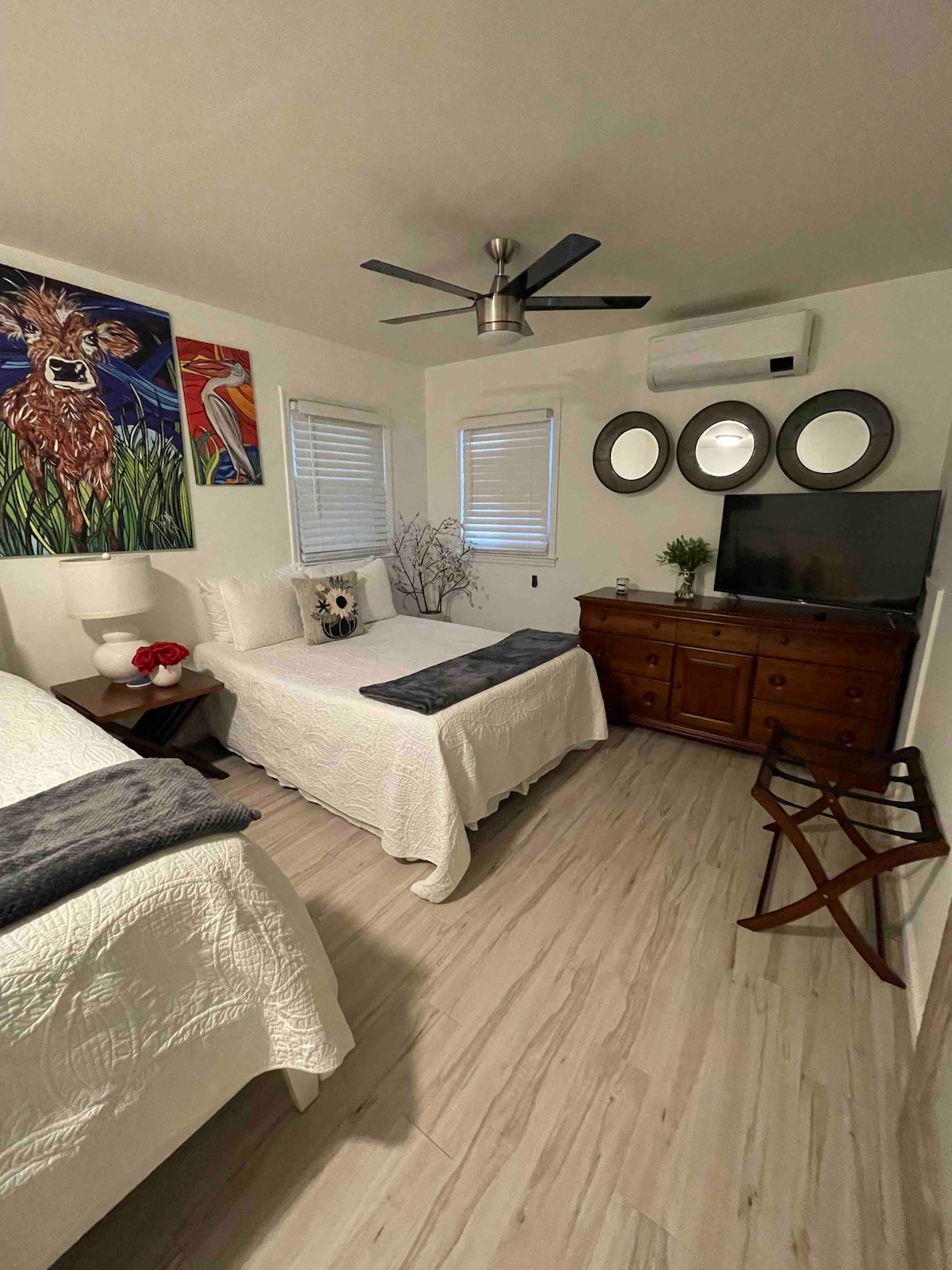 This unique guest quarters features a kitchenette, king bed, sofa, tv, pool table, and an upstairs loft. You’ll be close to everything! Walk to the beach, local restaurants, playground, and library. It’s just a 2-minute walk to tennis courts, the library, and farmers market, and only minutes more to the ocean and dining spots. A short drive takes you to Murrells Inlet and all five nearby hospitals. Perfect for long-term beach stays or travel nurses.