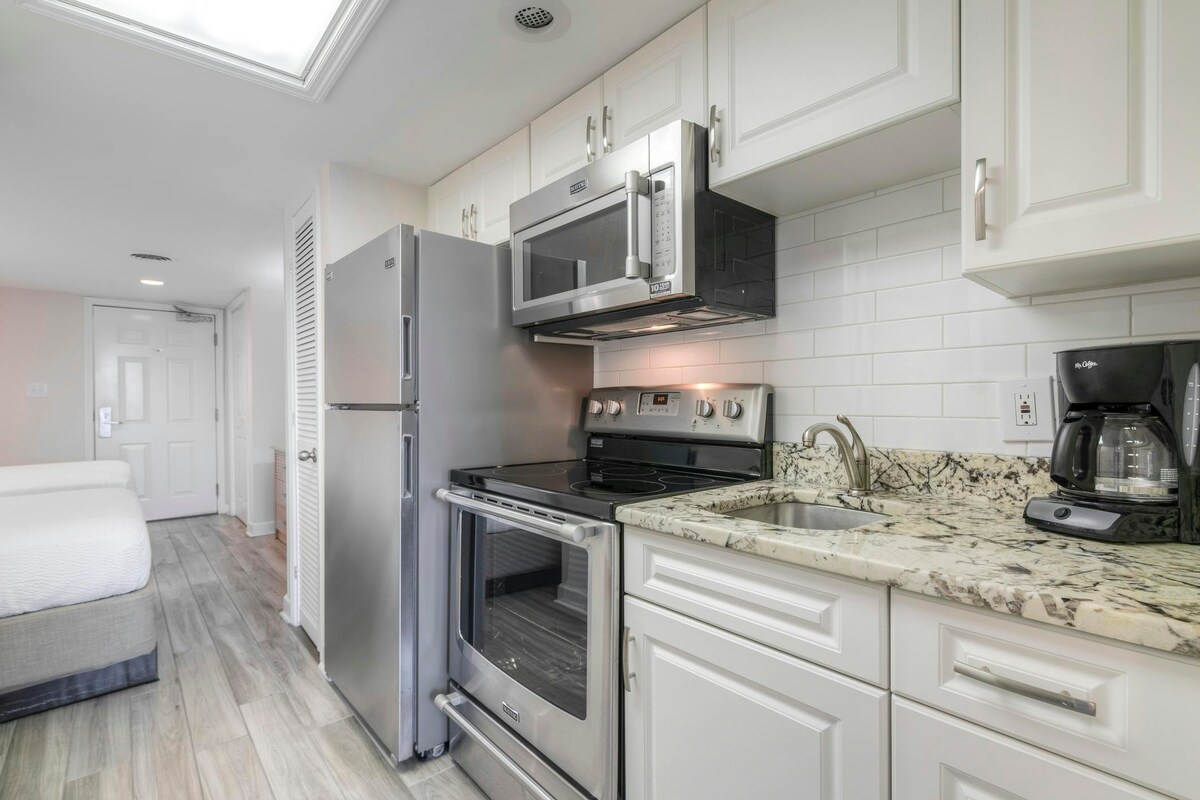 Enjoy a peaceful stay in this cozy 1-bedroom back unit at Kingfisher Inn, perfect for a relaxing getaway. This comfortable space includes a well-appointed bedroom, a convenient kitchenette, and access to resort amenities. Whether you're lounging by the pool or exploring the nearby beach and local attractions, this retreat offers the perfect blend of comfort and convenience.