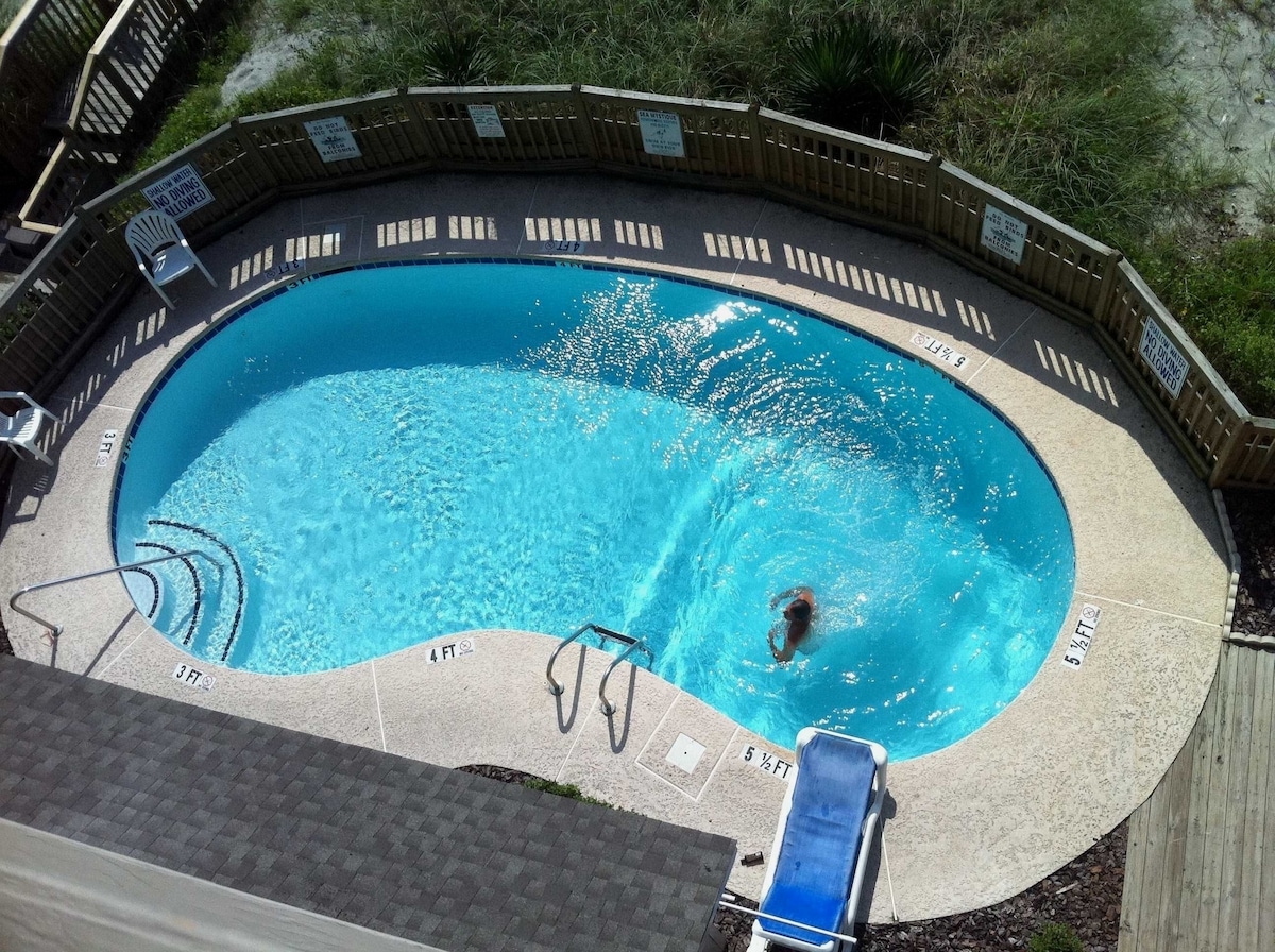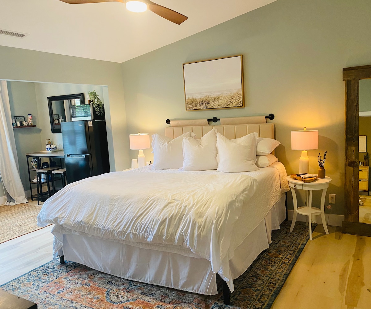 Relax in this calm, stylish, and cheerful space. You are approx 1 mile from the ocean in this bright & sunny condo, which includes a Full-Size antique bed with a Soft & Plush Pillow-Top mattress. Books, games, coffee, and snacks are included. Close to restaurants, shopping, golf, & more! This is a lockout unit with a private entrance, and can be rented along with the larger unit for more guests. Owner lives less than 1 mile away. Free parking. *NOTE: Resort Amenities are NOT included.