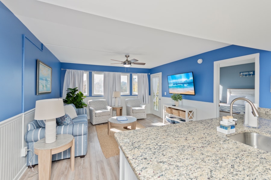 Join us at the front of this picturesque family friendly 33-acre gated community. Enjoy our 2 bed 2 bath condo with great views of the white beaches & rolling Atlantic Ocean tides. This condo offers a fully equipped kitchen with ample room for 6. While you’re here be sure to check out all the amenities including the Lazy River, Indoor and Outdoor Pools, Jacuzzies, Sport courts, Full Fitness Center, Play Areas, Snack Shack and Beach Bar. Condo-510B