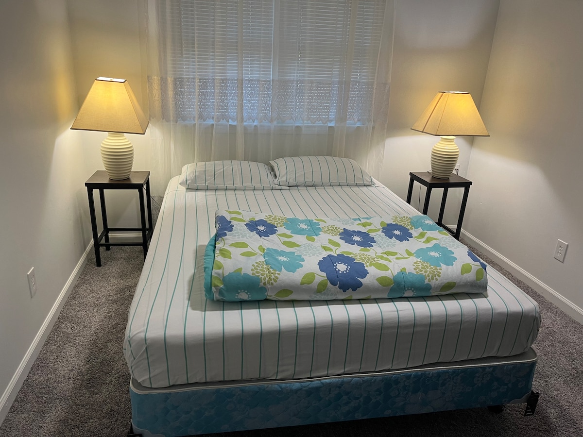 Our condo is located in the front section of the "A"Bldg.This condo has a KING bed in the master with a full sized private bathroom, twin beds in the 2nd bedroom and a queen sofa bed in the living room. There's also another full bathroom . We are located in a 33 acre ocean front resort with 6 pools on the border of Surfside at the southern end of Myrtle Beach,.We also have 24 hour security for our guests. Our resort is a very family oriented resort. Lazy river,heated pool.Outdoor games!