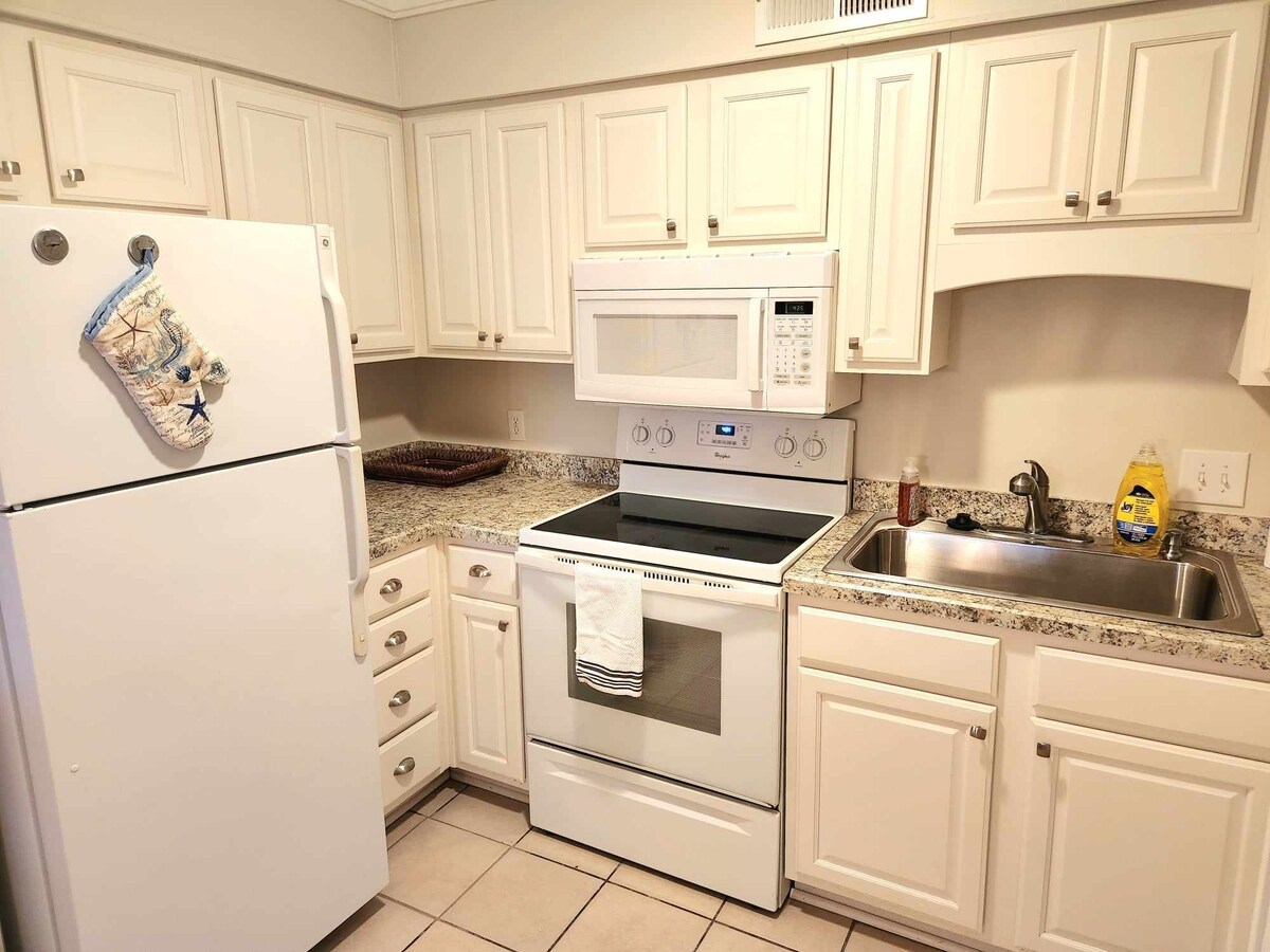 距离海滩1.5英里的愉快双卧室房源。