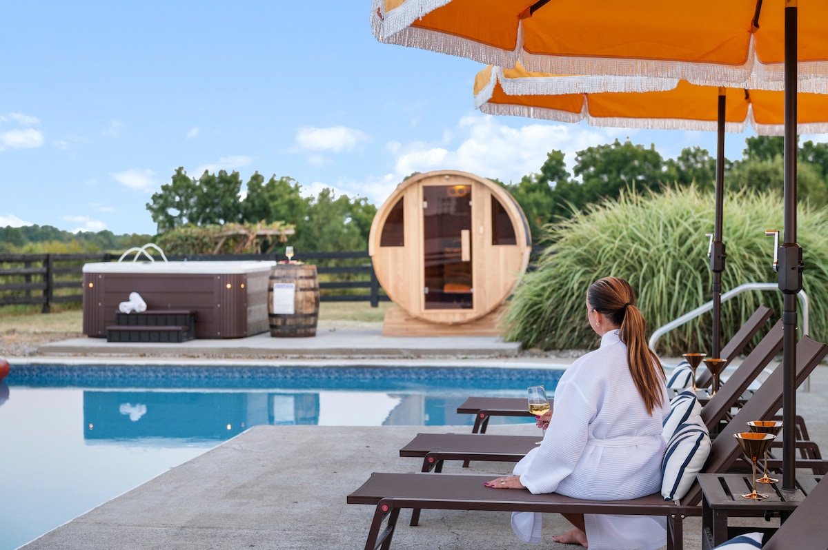 Step out your front door to see beautiful pastures where you can take your coffee and walk to greet the horses. Peaceful setting but just five minutes to downtown Lexington. If traveling by plane it just two minutes away. Enjoy a little quaint piece of Kentucky with historical Keeneland racetrack your next door neighbor. Experience Lexington the horse capital of the world on an actual working horse farm. Sorry pool and hot tub not included