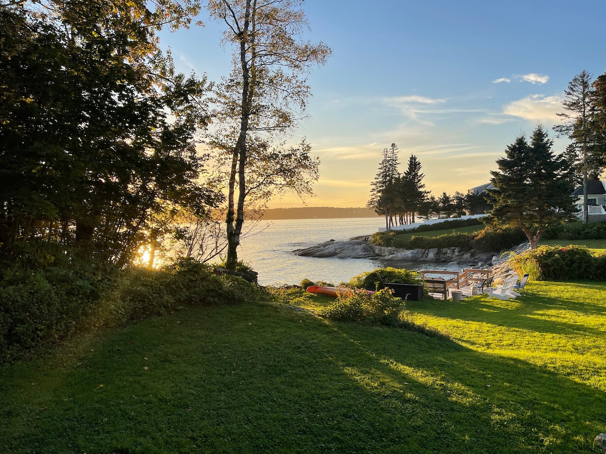 Authentic oceanfront Maine home, with stunning views and amazing sunsets. Located on Pinkham Cove at the mouth of Boothbay Harbor. Experience the village of BBH , hiking trails, Botanical Gardens and explore the tranquility of Maine. This is the perfect getaway cottage. Enjoy the deck and beach access. The home was recently remodeled. The kitchen is a gem with quartz countertops and Bosch appliances. Curl up by the cozy fireplace, enjoy the amazing harbor view!!