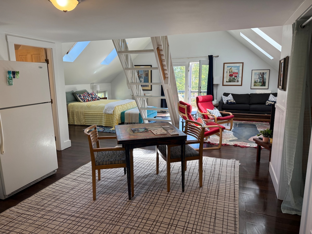 Enjoy a cozy shipbuilder's cottage in Bath, Maine. This quaint apartment attached to a family home has its own entrance and contains a bedroom, a bathroom, a kitchen, and a living room with antique details that reflect its 200-year old history. Only a 15-minute walk to historic downtown Bath, a 3-minute drive to Thorne Head Preserve, and a 25-minute drive to Reid State Park and Popham Beach. Come appreciate everything MidCoast Maine has to offer! PLEASE NOTE: This apartment has steep stairs!