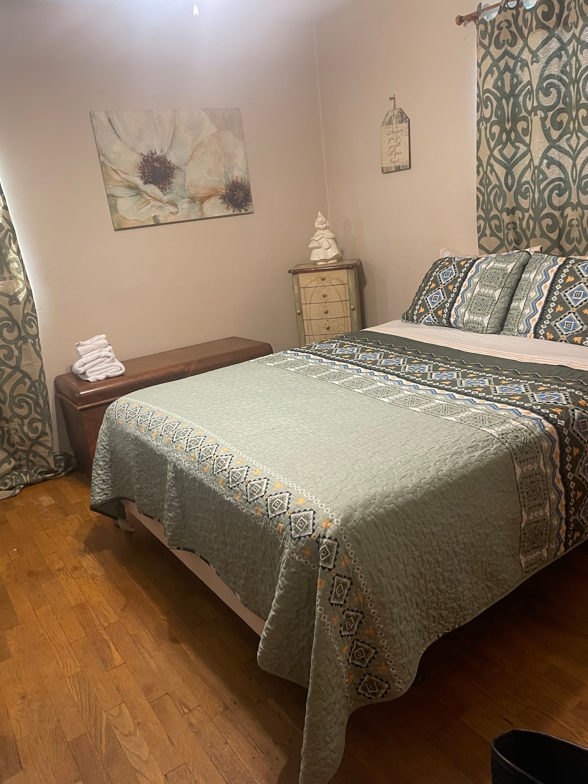 A discount price for weekly & monthly bookings. If you plan to stay longer than a month a special rate can be given. Enjoy the entire apartment with all the amenities of home. The place is very clean . Enjoy your own private entrance and parking. The living room is equipped with leather couch, large screen screen TV and fireplace. There is a full bathroom with a full tub and shower. The bedroom has a queen size bed
