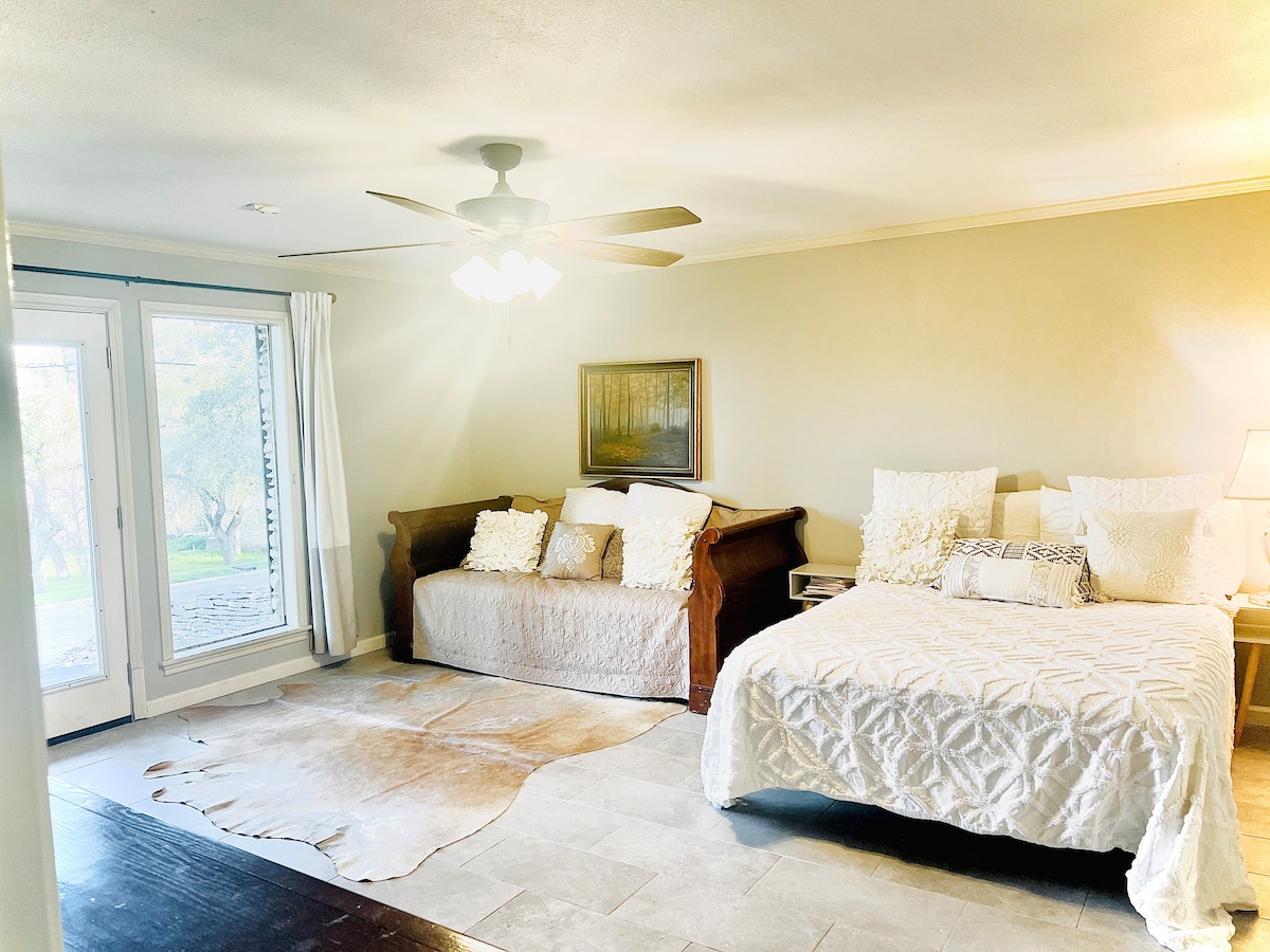 Boutique Tree-Top Retreat with Bikes & Nature Views Escape to this serene, light-filled guest suite nestled among the oaks. Overlooking a scenic hiking and biking trail, this peaceful retreat is just a 3-mile bike ride along a nature trail to the charming Town Square, where you’ll find an array of local shops, cafés, and restaurants. Stop along the way for a swim at a Texas favorite, the Blue Hole. Or bike 2-miles west for a refreshing swim at Lake Georgetown. Complimentary bikes and kayaks.