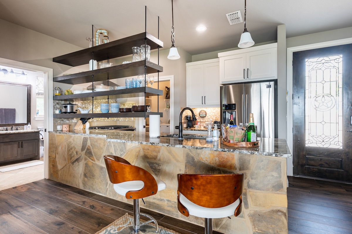 Relax in this calm, stylish space. This home is in a quiet and private culdesac located within a mile of Sheraton Convention Center, Rivery Park coffee shops, restaurants, and San Gabriel park and trails. Located with two miles of the Georgetown Square and nightlife. Home offers the best of all worlds with the interior including wall wine racks, kitchen appliances, and spacious suite rooms with adjacent areas for office work. This includes the huge lot space for outside activities.