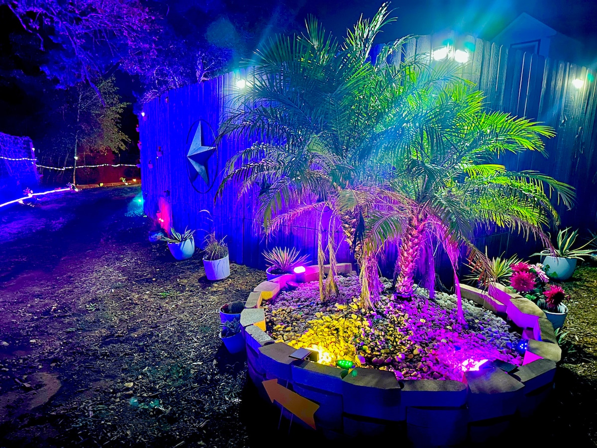 This home is perfect for experiencing Austin from a convenient and comfortable home base with a HUGE backyard! Explore (and take advantage of all the recommendations we offer in our guidebook!) then come home to relax in your private hot tub, play ping-pong, have a movie night in the "Cowboy Cave", or play some croquet! This home also features a HUGE back deck perfect for outdoor dinners. WALK TO DOWTOWN, THE BEST TACOS IN AUSTIN, BREWERIES, COFFEE SHOPS, ETC. 10 MINUTES FROM THE AIRPORT!