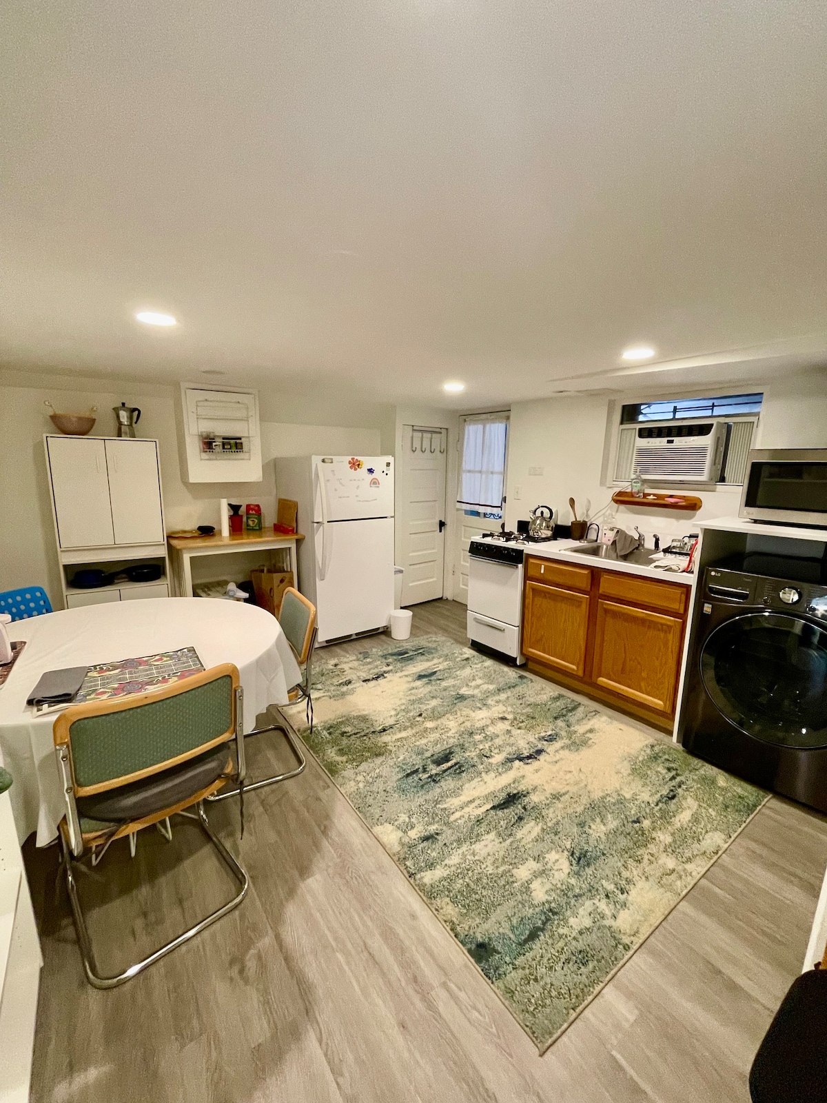 A pet-friendly jewel box English basement apartment with a garden in the heart of Georgetown. Steps from Tatte and many shops. A quick walk to the waterfront or the University. Host lives in the upstairs unit. - Free permit street parking for one car - Keypad entry - Professionally cleaned - Full kitchenette (induction cooktop, oven, microwave) - Queen bed - Twin with trundle bed - Internet-connected TV (Roku with Netflix, Disney+, & basic cable) - Verizon internet (200 mb/s) - Laundry