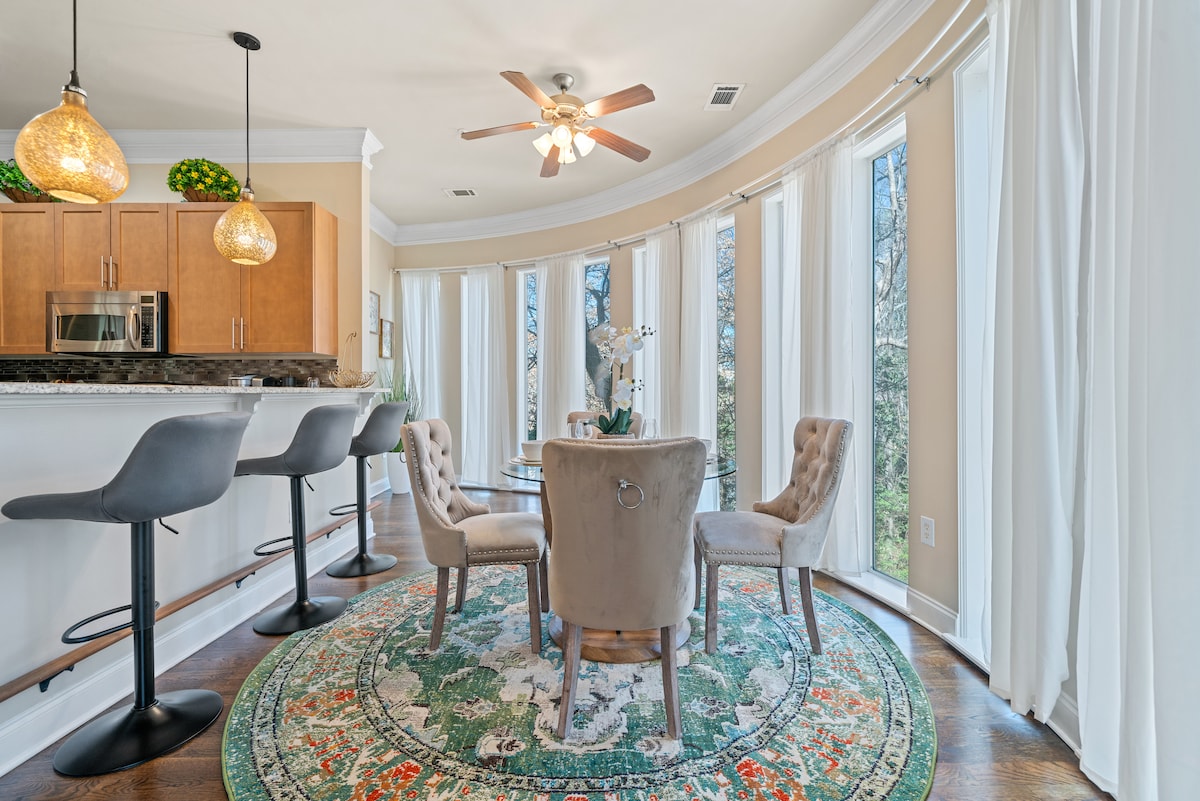 Experience the pinnacle of Midtown Atlanta staycations in this immaculate, professionally designed penthouse. The kitchen features stainless steel appliances—large and small—plus cookware, dishware, and a wine cooler for effortless entertaining. Enjoy state-of-the-art cinema sound for a true in-home theater experience. The spa-like bathroom invites you to relax and recharge with plush robes, slippers, premium toiletries, and soothing aromatherapy bath products. Private chefs welcome.