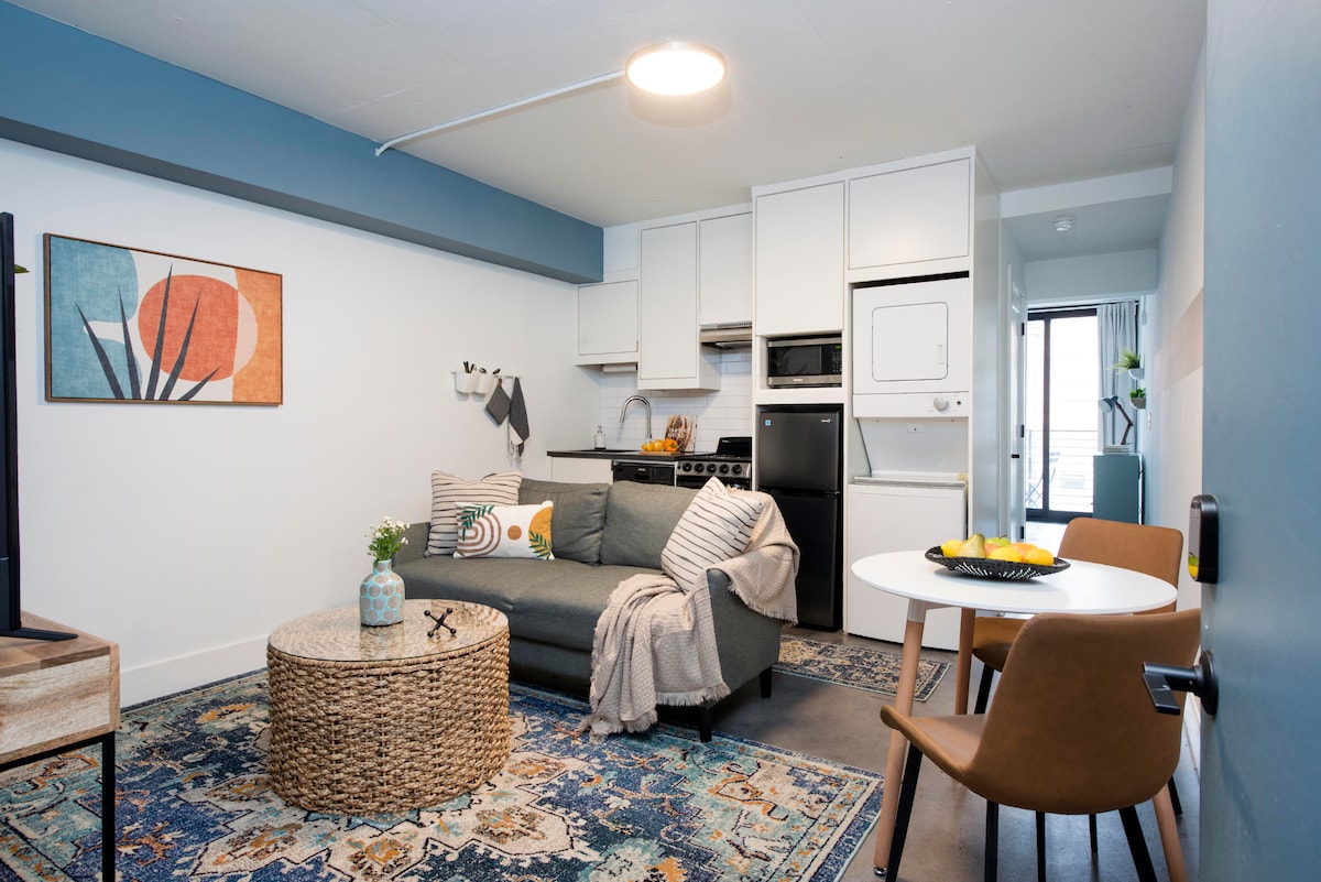 Boutique Hotel-Style Studio in Downtown Atlanta – Private Balcony & Rooftop Views Enjoy a boutique hotel experience in a studio apartment located in a beautifully restored 1964 building, fully remodeled in 2020. Each unit features similar but unique decor, with the same layout and amenities for a consistent stay. Please note: The photos represent the style of our rooms, but your exact unit may have slight design variations.