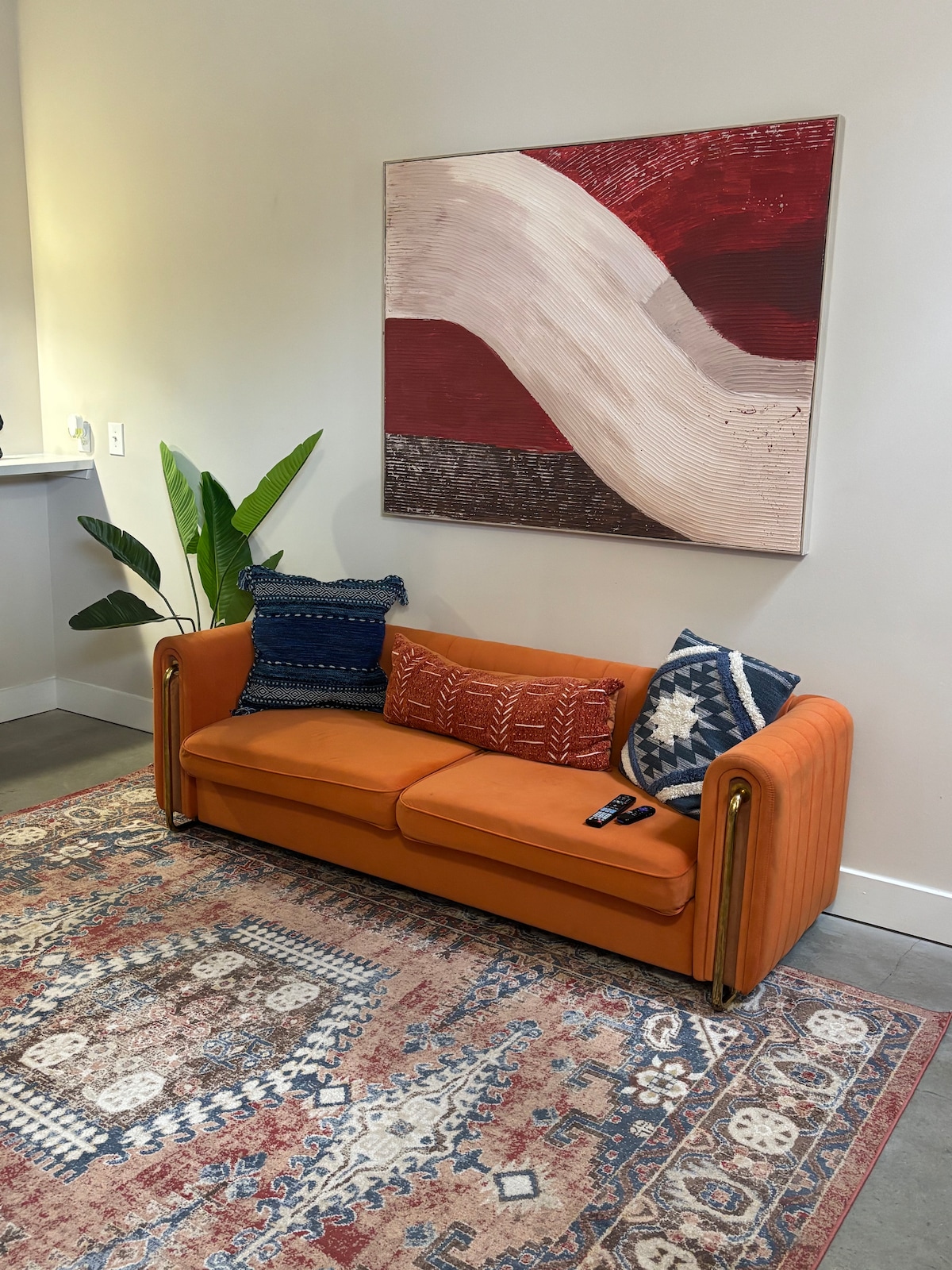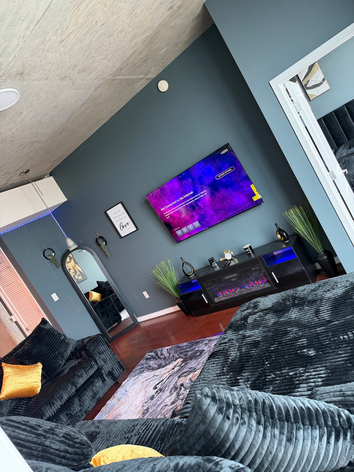 Experience luxury and calm in this peaceful high-rise retreat. Soft tones, high-end finishes, plush furniture, LED lighting and two private balconies with stunning city views set the perfect mood. Located in Atlantic Station steps from top dinning, premium shopping, a gym, rooftop pool, and a movie theater. Only 15 minutes from the State Farm Arena and Mercedes-Benz Stadium. Optional airport rides and discounted cash rentals available. *MUST BE BOOKED BEFORE ARRIVAL* parking (key access required