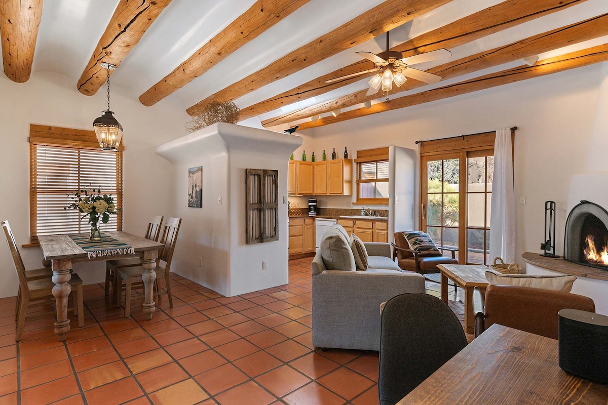 🌜H I D E A W A Y N O R T E: an inspiring & cozy adobe for your high desert adventure 🌵EASY 3 MINUTE WALK to Santa Fe's best restaurants, bars, coffee shops, boutiques, movie theaters, farmers and artisan markets. 🌵Train direct from ABQ + skip the rental car 🌵King + Queen beds 🌵Fast ⚡️ WIFI 🌵Fireplace + AC/heat minisplits 🌵Bonus Sunroom w/couch and TV 🌵Private patio 🌵Full Laundry 🌵KIDS: Pack n’ Play, high chair/booster, toys, books, white noise 🌵DOGS: beds, bowls, gated patio