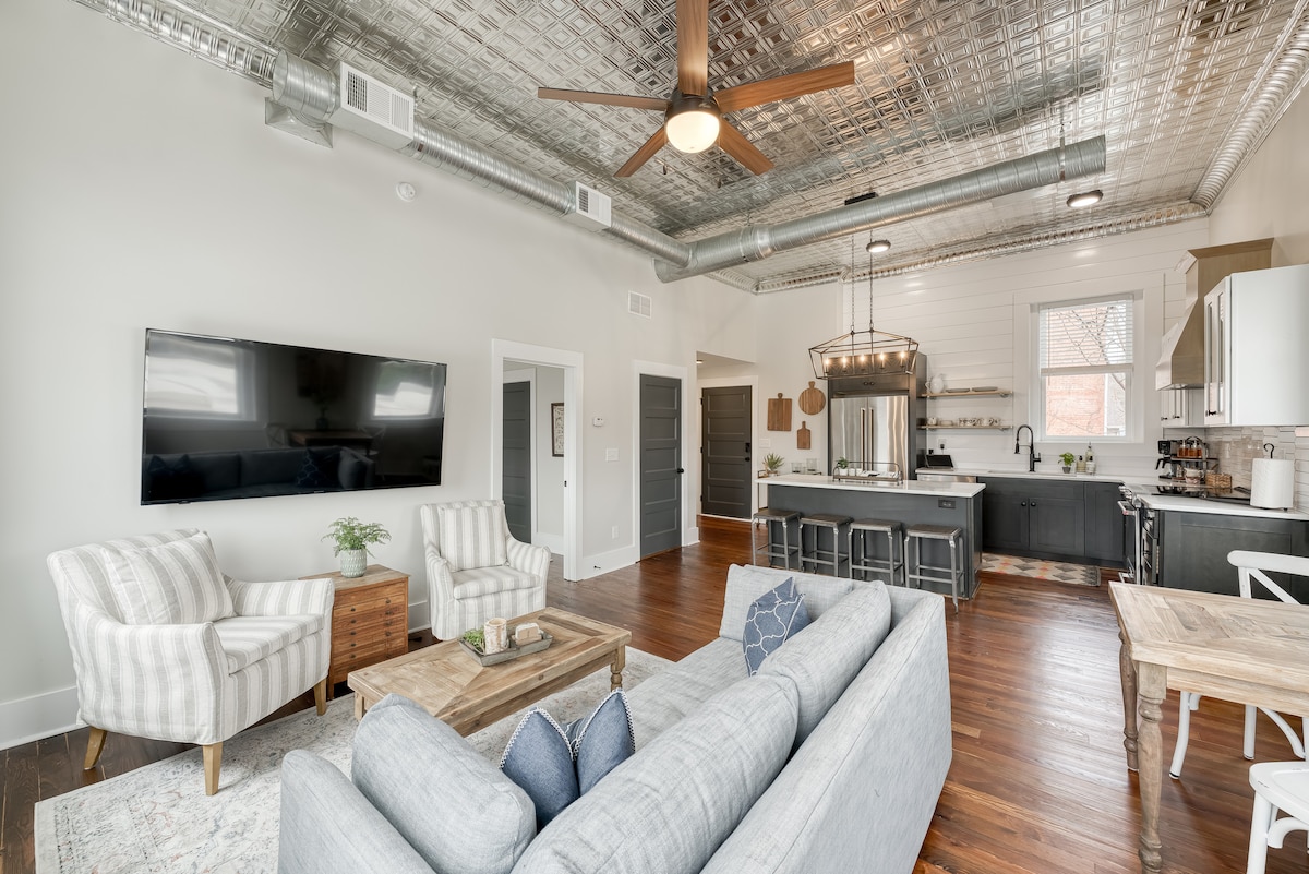 Stride across hardwood floors to a sky lit common area that stays bright and cheerful all day. Adjoining that space is an open kitchen area with a breakfast bar. It's a quiet place to begin and end a day of exploring the historic city. New construction- just completed! All new fixtures. Beautiful loft in historic building. Front door is 35 feet from the Georgia Theatre. This space is in the heart of the downtown Athens historic district. You have the entire space to yourself :) The loft is in the Downtown Athens historic district—one of the nation's premier examples of early commercial architecture, developed in the late 1800s. The GA Theatre, UGA North Campus, and the arch are close by. Guests may park in the College Ave. Parking Deck with the provided pass.