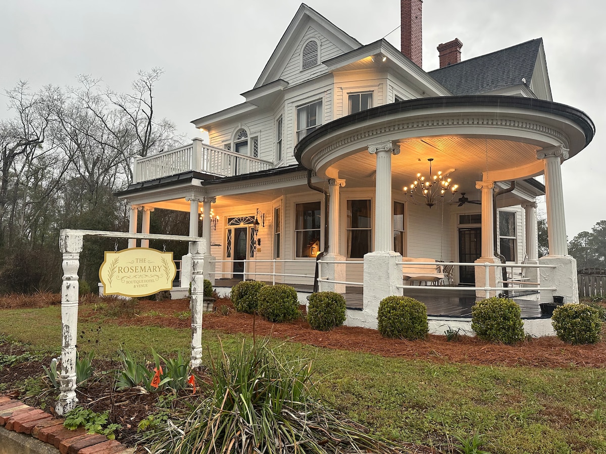 This spacious King Suite, located on the second floor of The Rosemary, offers a comfortable and elegant retreat. The suite features a beautiful garden tub perfectly positioned to overlook the koi pond and surrounding gardens, creating a peaceful and relaxing atmosphere during your stay. With its generous space and tranquil views, the King Suite provides a wonderful place to unwind and enjoy the charm of The Rosemary.