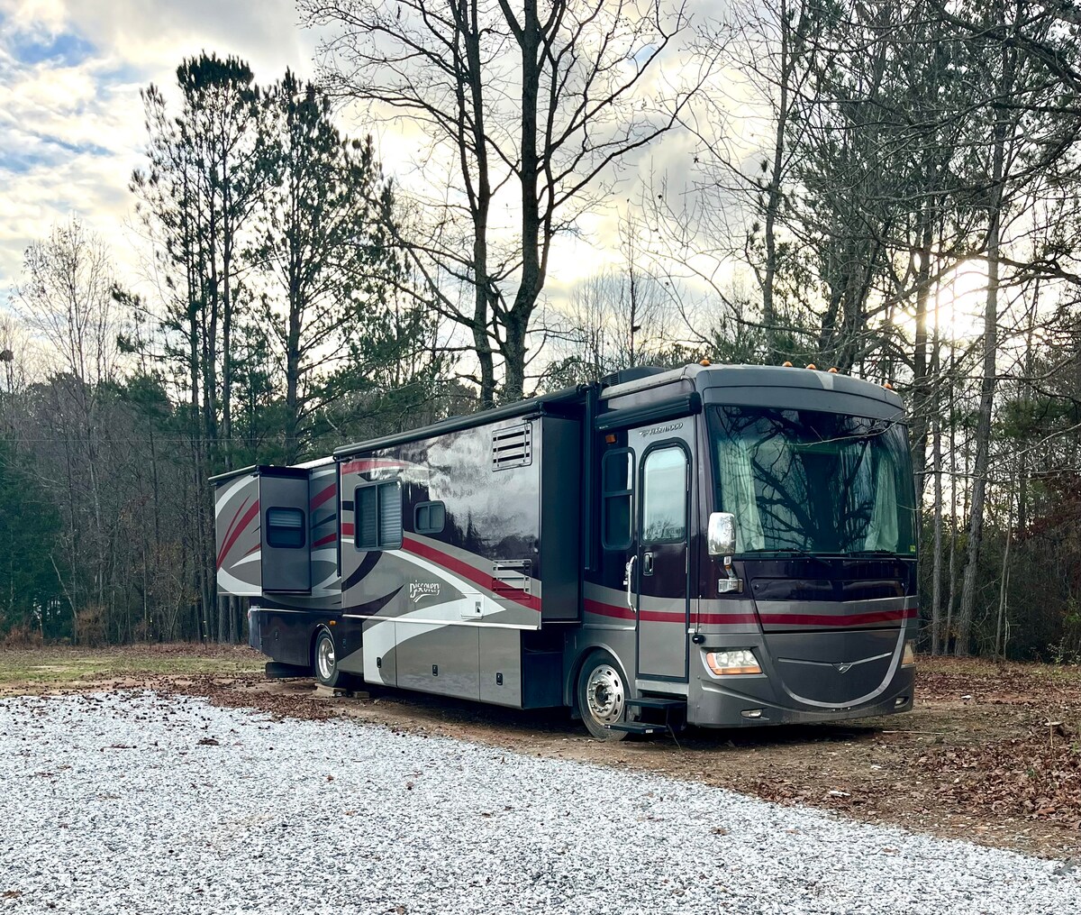 Located just 30 miles from the sites of Savannah, our spot is prime for both exploring adventures in the hostess city while enjoying the simple comforts of country living. Nestled beyond an oak lined entrance, your private space tucked away at the back of 1.60 acres of wide open space awaits you. Expect mornings with the eastern blue birds and robins and count on relaxing evenings inside the state of the art RV on the fireside recliners or outside by the flames of the crackling fire pit.