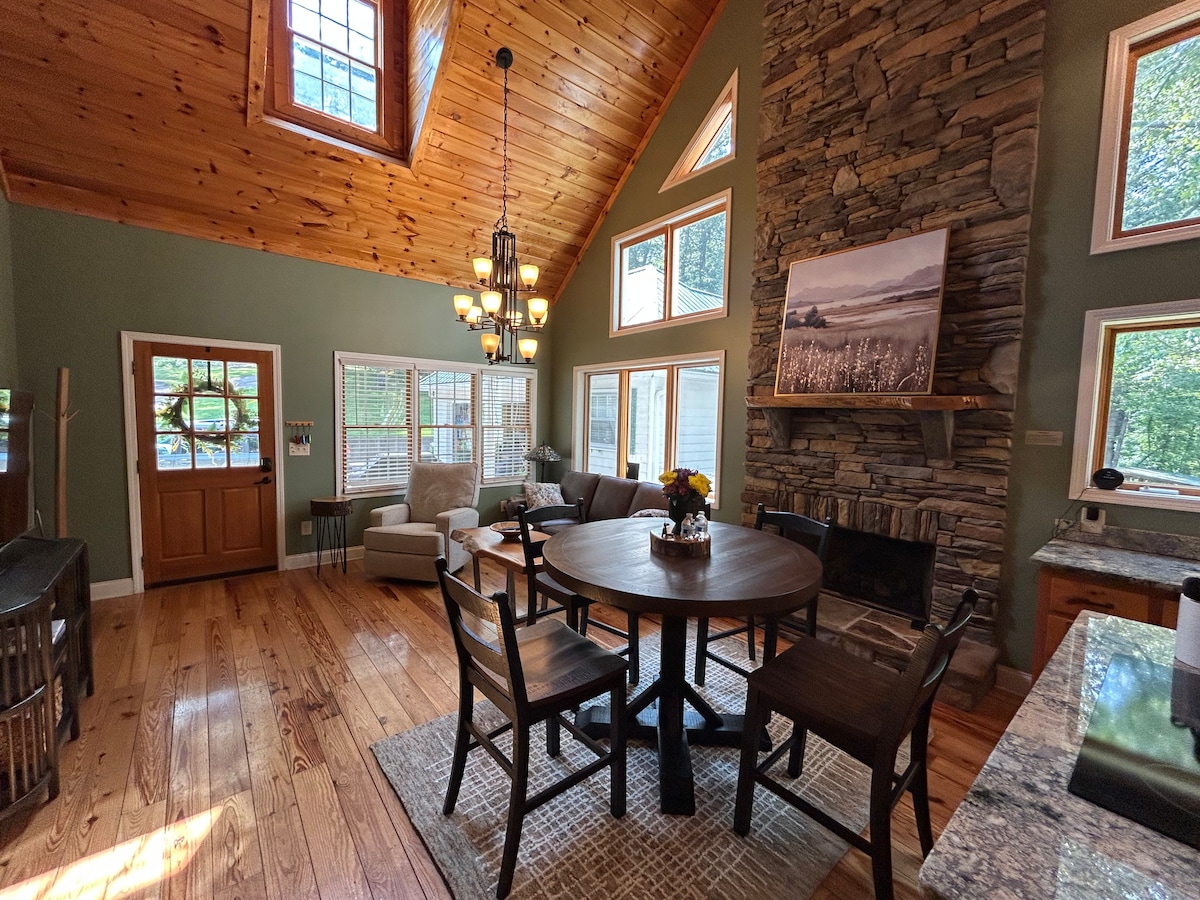 Farmhouse decor in a country setting nestled on the edge of our property overlooking a mature hardwood forest. Space has lots of unique touches from reclaimed barn wood design to custom fixtures. Wood floors and ceilings throughout give the place warm and inviting atmosphere to relax. Large picture windows allow for lots of natural light into the space if you desire. Large porch covered porch to relax. Fire pit just off the porch. Starlink WifI Reminder kids under 12 not allowed at this unit.