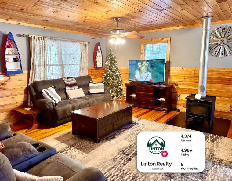 EASY WINTER ACCESS!! Imagine your stress being whisked away the moment you leave your car by the sounds of the creek below the cabin. Enjoy it from the treehouse with outside fireplace, or down by the creek at the firepit or on the screened back porch. Cabin has smart TV's, WIFI, cable, luxury linens and towels. Two master suites welcome you to a peaceful slumber. Many nearby wineries, waterfalls, a beautiful train ride, trout fishing, river tubing, or visit the many apple orchards in the area.