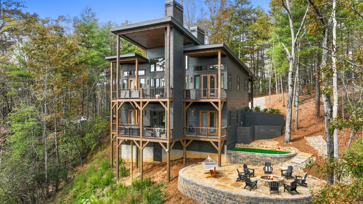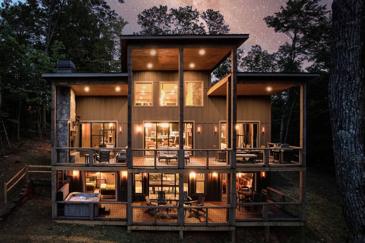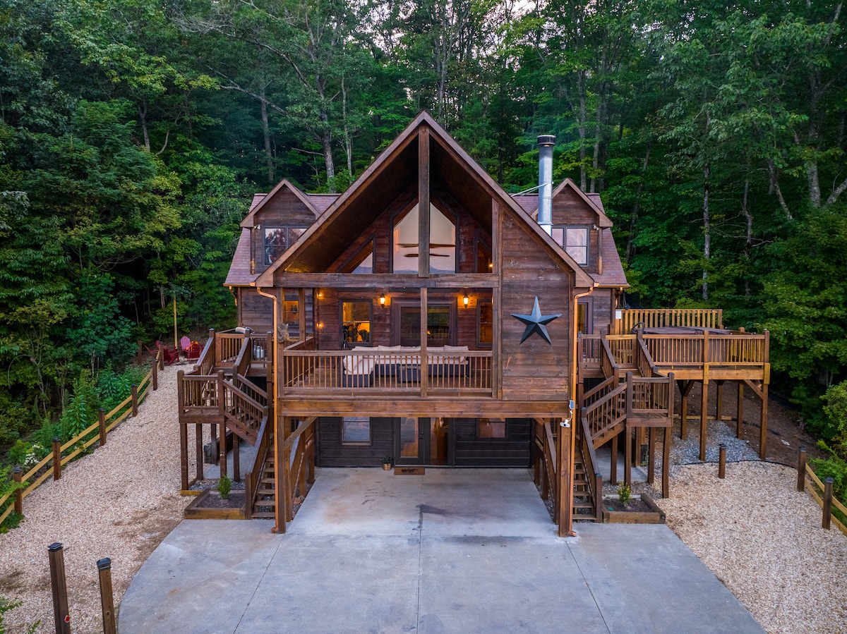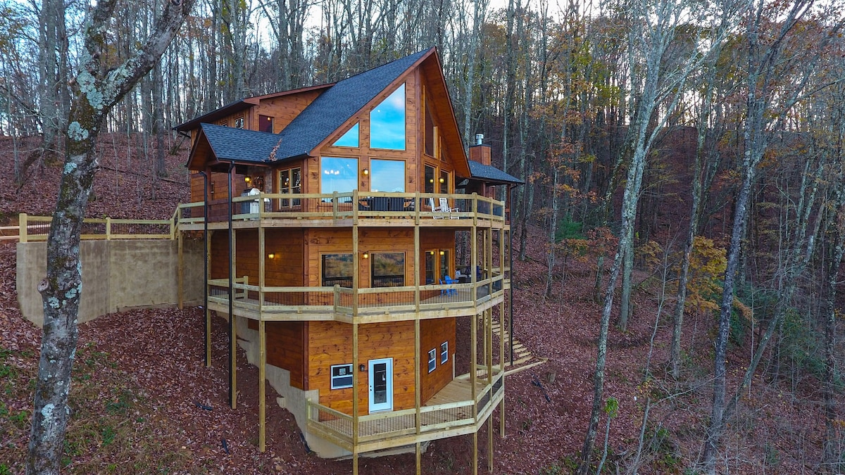 ✓Mountain Views ✓HotTub ✓WIFI ✓2 King Beds w/ ensuite baths ✓Firepit-wood provided ✓Indoor Gas Fireplace ✓3 Porches-Swing Bed ✓Blackstone Griddle and Pizza Oven (gas provided) ✓4 Smart TVs-Dish Satellite ✓2 Dedicated Work Stations ✓4 Person Air Hockey Table ✓Movie/Arcade Room ✓Infinity Game Board ✓Outdoor Games (Corn Hole, Axe Throwing & Jenga) ✓Pack 'n Play/High Chair ✓Washer/Dryer ✓Whole House Generator ✓Very Private