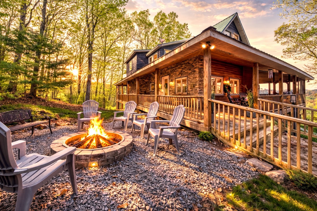 迷人的蓝岭湖景小木屋*热水浴缸*桑拿*