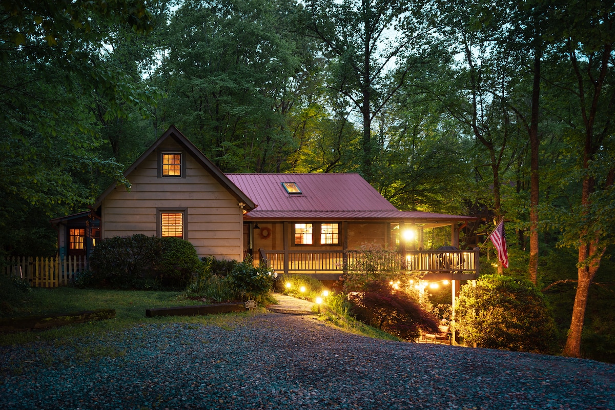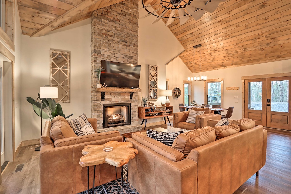 The Cedar Grove Haven brings a fresh new vibe to your next Blue Ridge mountain getaway! Every inch of this newly built house was intentionally designed to provide YOU with rest and rejuvenation of your mind, body, and soul. Large windows provide a picturesque wooded scenery and abundant natural light. Head outside to enjoy a soak in the spa, a movie by the fireplace, dinner on the gas grill, or playing a fun game of shuffleboard! Only a short 10 minute drive to downtown Blue Ridge!