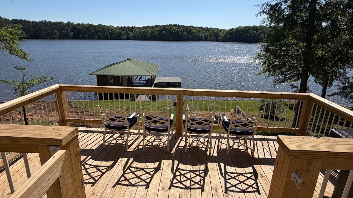 Enjoy 270° views from our private peninsula on Lake Sinclair, where the water is clear with a soft sandy bottom. Three master suites with en‑suite baths plus a fourth bedroom/bath. Open floor plan with sunset views through double doors. Dock your boat, grill on the porch, relax in the screened patio, bonfire, kayak, paddleboard, or float. Nearly 600 ft of private shoreline. Sleeps 12 (14 with cot/air mattress).