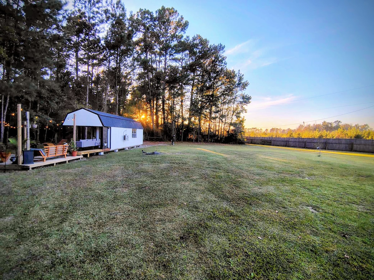 Located just 30 miles from the sites of Savannah, our spot is prime for both exploring adventures in the hostess city while enjoying the simple comforts of country living. Nestled beyond an oak lined entrance, your private space tucked away at the back of 1.60 acres of wide open space awaits you. Expect mornings with the eastern blue birds and robins and count on relaxing evenings inside the state of the art RV on the fireside recliners or outside by the flames of the crackling fire pit.