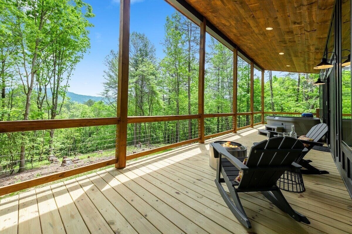 If you are looking for a private and relaxing mountain getaway, this newly built custom “tiny cabin” is a perfect escape. The cabin sits on a five-acre wooded lot with long range mountain views. You will feel like you've entered a different world as soon as you arrive. The wall of windows ushers in the beauty of the outdoors creating an inviting and peaceful atmosphere for a romantic getaway or a solo retreat. The deck includes a hot tub and a solo stove fire pit to enjoy coffee and s'mores.