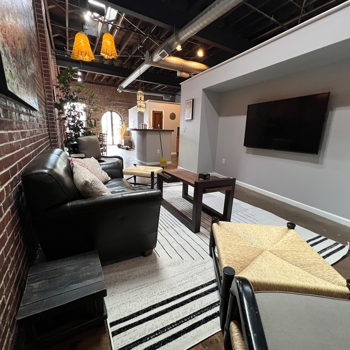 Welcome to your Castleberry Hill loft - a character-filled downtown stay with flexible space and easy access to Atlanta’s top spots. - Sleeps 6 | 2 bedrooms | 3 beds | 1.5 baths - Elevator access & free parking garage on premises - 1 space - Rooftop lounge, shared patio or balcony & shared BBQ grill: electric - Full kitchen w/ Jenn-Air stainless steel gas stove - In-unit washer & dryer, dedicated workspace - Self check-in w/ smart lock & long term stays allowed