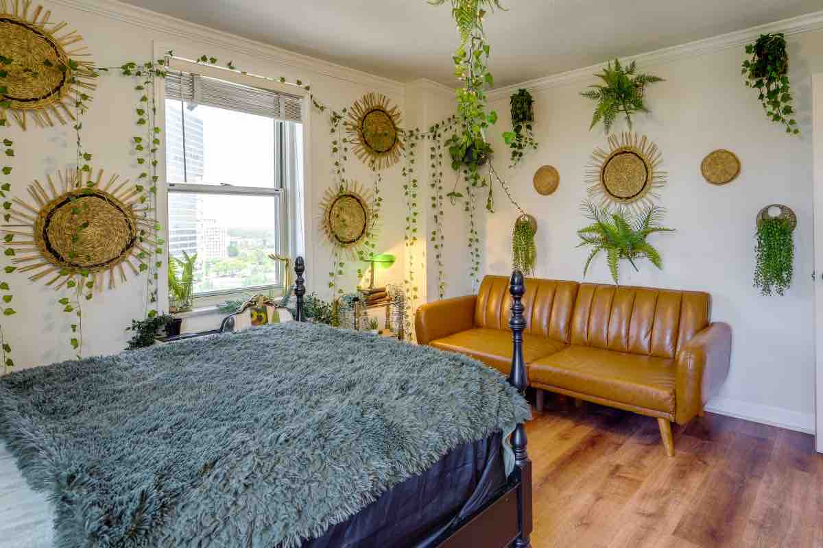 Kick back and relax in this calm, stylish space. Enjoy the views from the 22nd floor. Enjoy it for work or play you will find your oasis. You can get an amazing sleep in the king bed with a purple mattress. Minutes away from all sporting venues and local attractions. Fully equipped kitchen all you need is a chef and fresh ingredients. Complementary toiletries, cleaning supplies, snacks, water, K-cup coffee and tea. We are one text or call away to give you better service.