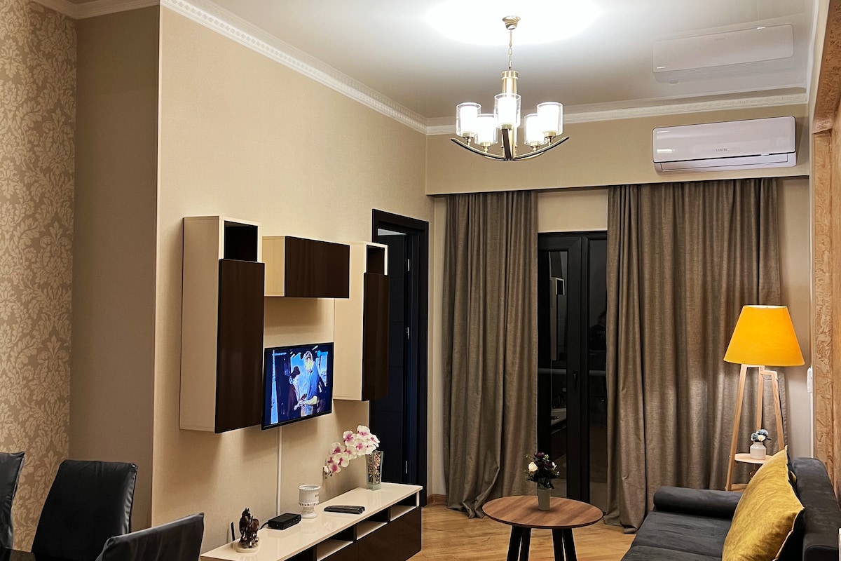 Wonderful apartment in the heart of historical center of Tbilisi, Located on newly renovated pedestrian area, that over the freedom square and new president palace and is surrounded with squares , cafes and restaurants where various events are arranged. There is also carrefour grossers store and pharmacy . Famous near by points: Rustaveli Theatre; Museums ; Sulfur bath and Botanic Garden; shopping mall “Galeria Tbilisi” ; Subway station, Opera;