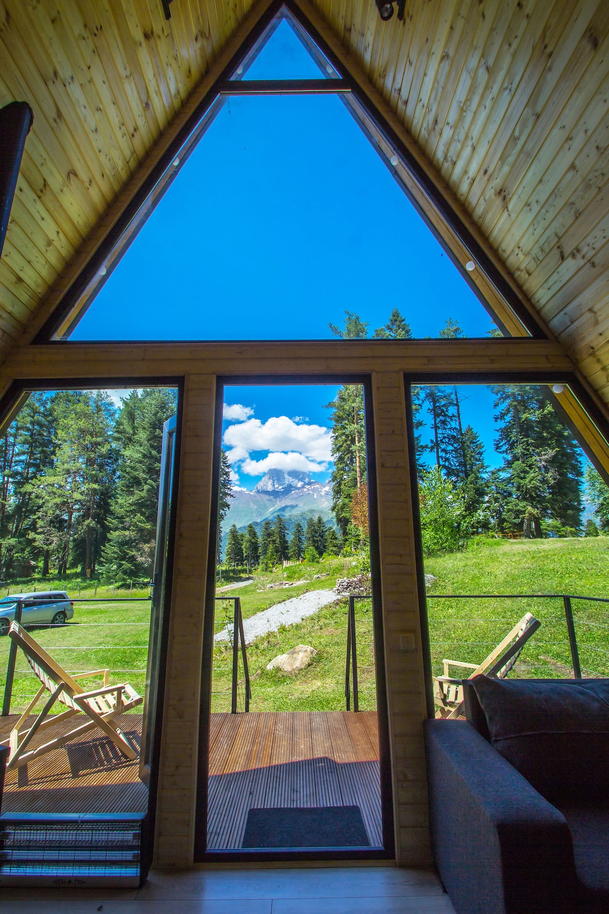 View, view, and view! Enjoy one of the most breathtaking views in all of Hatsvali, Mestia. The place is private and peaceful, yet only 50 meters from the Hatsvali ski lift. Wake up to the sounds of squirrels, maybe spot a fox, and admire the majestic twin peaks of Ushba. The area is regularly treated for insects, but as it’s surrounded by pristine forest, you may occasionally notice a fly or small bug — part of the true mountain experience.