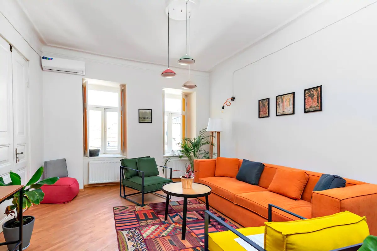 Do you want to witness and feel real spirit of old Tbilisi? Then our Instaworthy and newly renovated apartment should be your best choice. The apartment is renovated in 2023. We have chosen eclectic design to make our guests feel modern design and real spirit of our neighbourhood Sololaki. Our fully furnished, light, spacious and cozy apartment is located on the historical building in the center of Tbilisi. This building has witnessed many historical events through its 2 centuries lifespan.