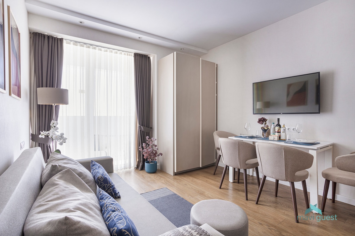 Our facility is decorated with simple and elegant colors. It has everything you need to live in and the located in city center. We offer not only sea but also city, lake and mountain views. At the same time our guests have opportunity to taste local delicacies free of charge, including delicious Georgian wine, cheese and dessert. Our facility is new and we will have special surprises for our first guests.