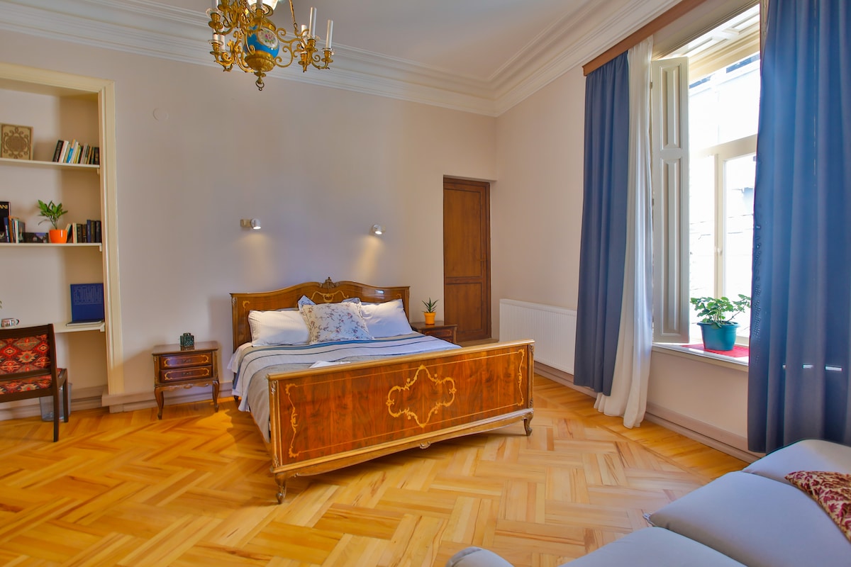 The apartments are located in Old Tbilisi on Ivane Machabeli Street, near Freedom Square. The historic building from the second half of the 19th century, designed in Neo-Moorish style, preserves the authentic spirit of the city. High ceilings, wooden parquet and antique doors are combined with modern comfort. Quiet courtyard, perfect location for walks, cafés and museums nearby. Self check-in and fast Wi-Fi.