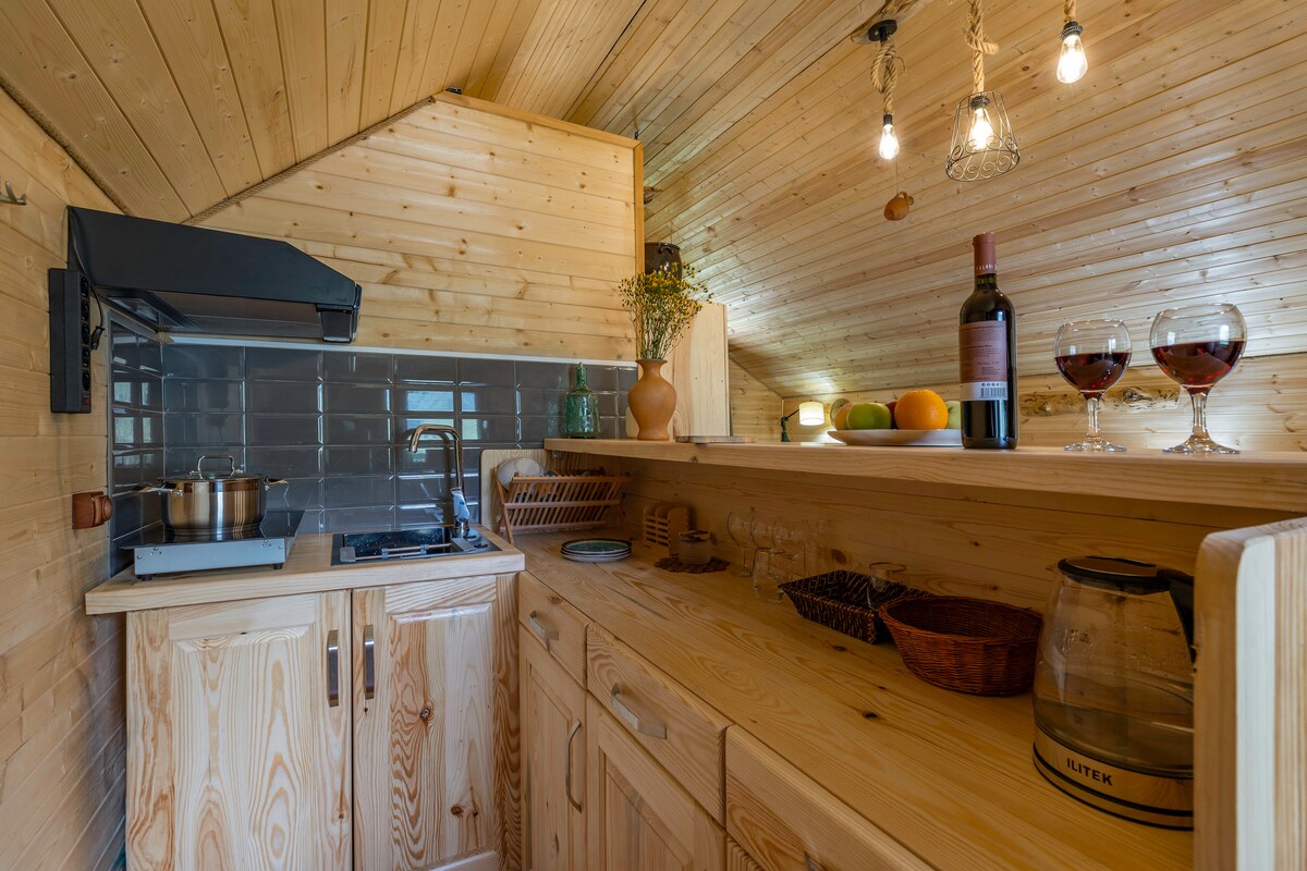 A Warm, Magical Escape With Sauna & Panoramic Glass Bedroom and Playstation 5. Escape to our romantic Wellness Cabin with panoramic glass bedroom, private wood-burning sauna, cozy fireplace, and magical outdoor lights. Perfect for couples, nature lovers, and peaceful getaways near Tbilisi. WARNING: this is not a hotel, you'll need to start a fire by yourself! make sure you can operate the cabin before booking!