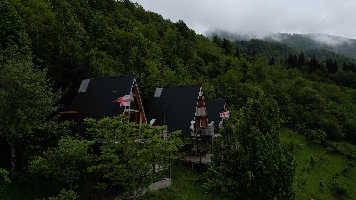 The Overlook is located in mountainous Adjara, 55 kmfrom Batumi, where you will find a quiet and cozy enviroment. We have 3 different cottages, One is large and the rest two are small ones. In the large cottage, we have two king-size bedrooms and one sofa And in the small ones, we have only one bedroom and one sofa☺️🏡