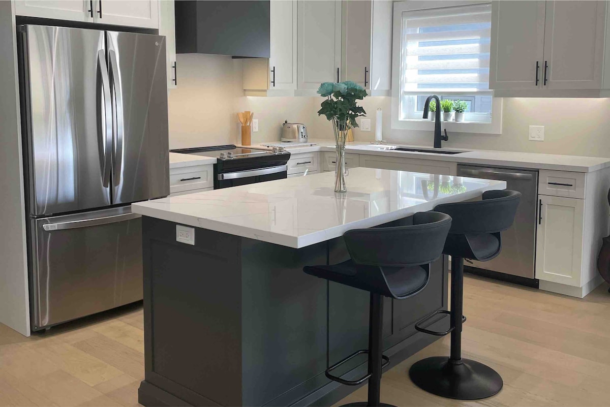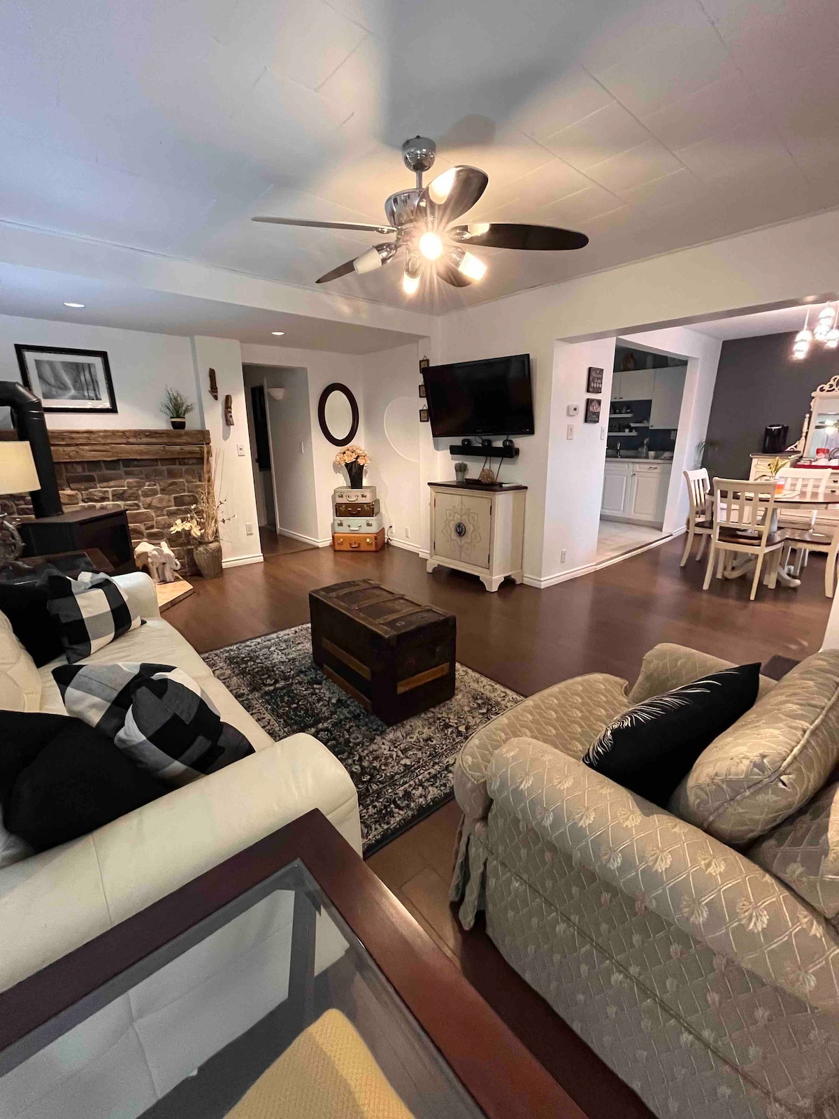 Welcome to our charming main floor apartment in the beautiful city of Orillia! This space is is suitable for families or small groups looking for a comfortable stay in a convenient location. This is a fully furnished home that features three bedrooms, one bathroom, a fully equipped kitchen with all the essentials needed to prepare your own meals. The living room is bright and cozy with a 43" Samsung Smart TV including Netflix, unlimited high speed internet and a spacious 6 seater dining table.