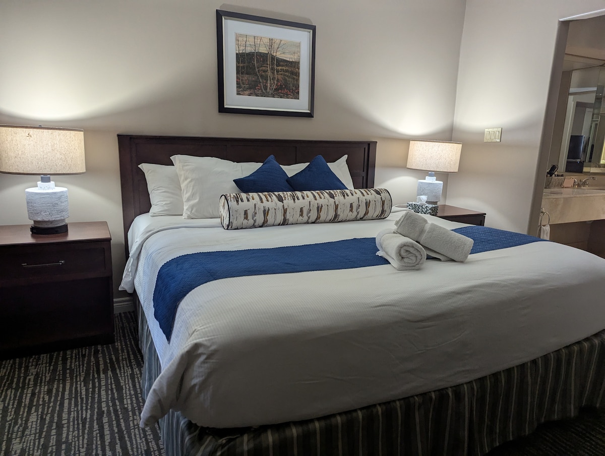Escape to Carriage Club Resort, nestled on rolling hills near Horseshoe Valley. Our 1-bedroom vacation rental sleeps 4 with a king-size bed and pull-out sofa. Enjoy the pool, firepit, volleyball, gym, and nearby skiing, golf, and Vetta SPA. Explore hiking trails, high ropes, and a 15-minute drive to Bass Lake's beach. Experience adventure and relaxation at Carriage Club!