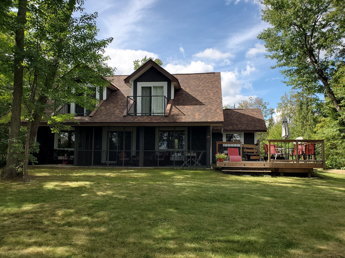 Welcome to Classic Cottage Getaway on Ahmic Lake, the true muskoka lifestyle with lakefront luxury. A peaceful & memorable stay awaits where you can boat, kayak, swim, soak up the sun on the dock and gorgeous nature surrounding. Spacious in & out best for large group. Big windows in every room offering stunning forest and lake views. A beautiful & thoughtfully designed vacation home, well equipped to host you four seasons with absolute beauty. Panoramic view barrel sauna & Irreplaceable Sunset!