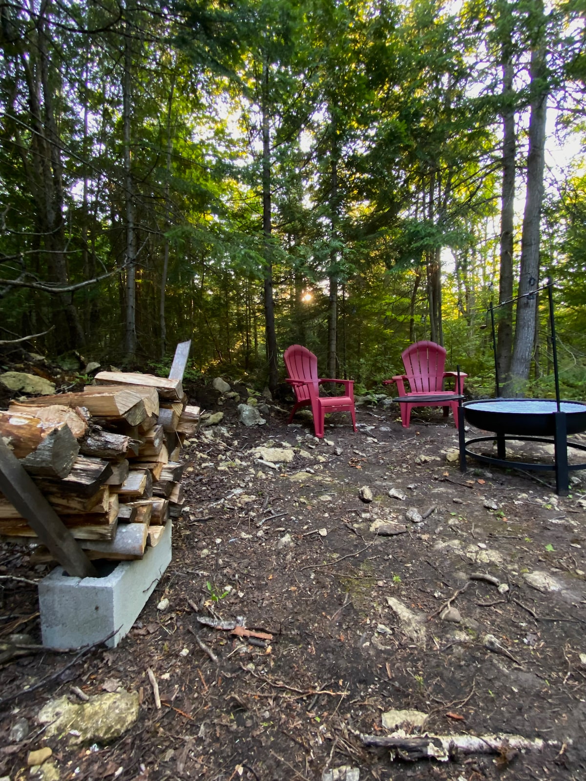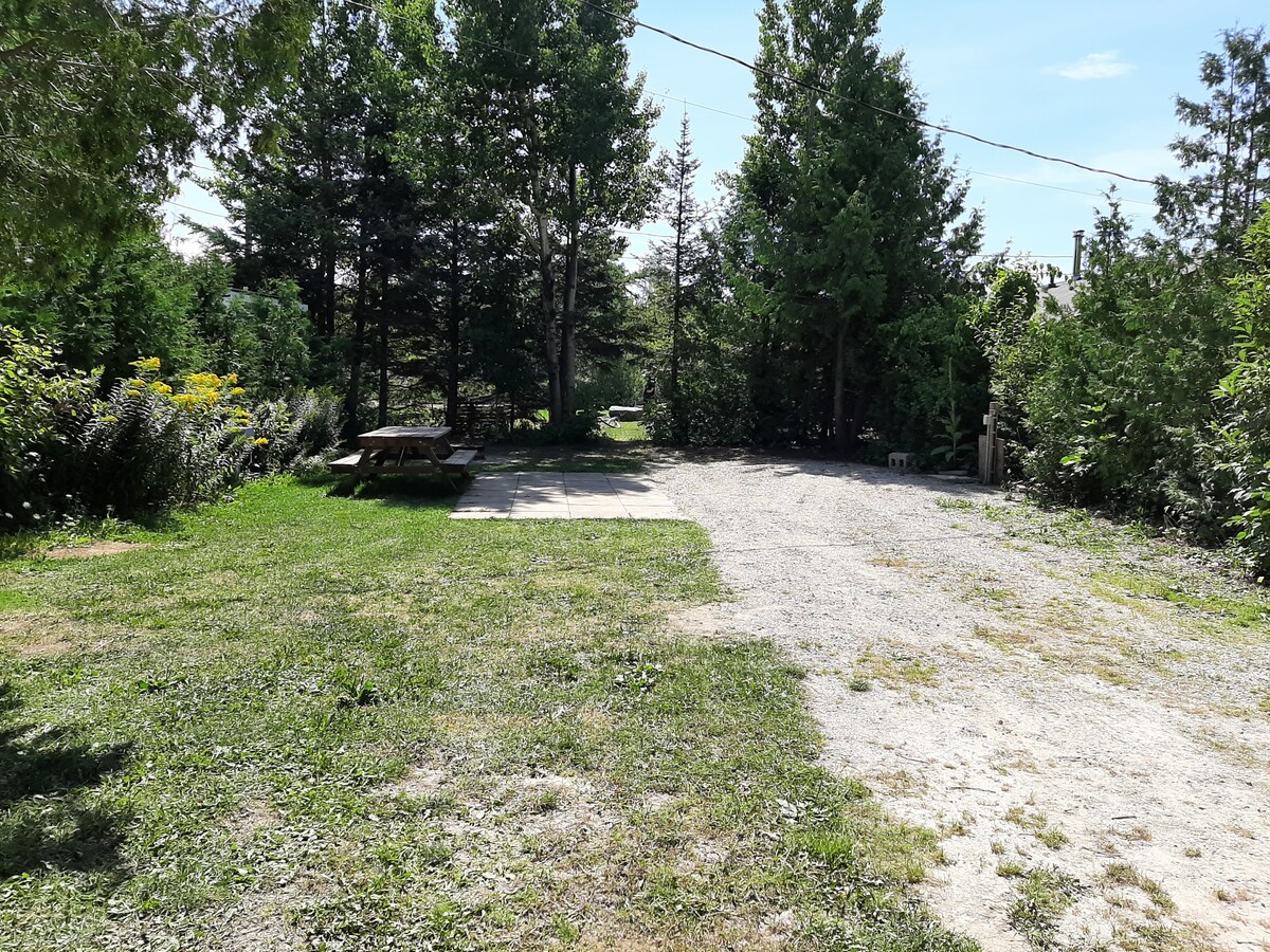 * power site, this site now has a 15 AMP service * No lodging included but a beautiful spot to set up your own or park your camper for the weekend. Outdoor seating area and fire pit included. Outhouse provided, privately tucked away from campsite. Firewood for purchase. Awenda park is just around the corner and minutes to historic Penetanguishene. Come see what adventure awaits! please note: - no showers on site. - pets are allowed but MUST be on leash at all times and picked up after.