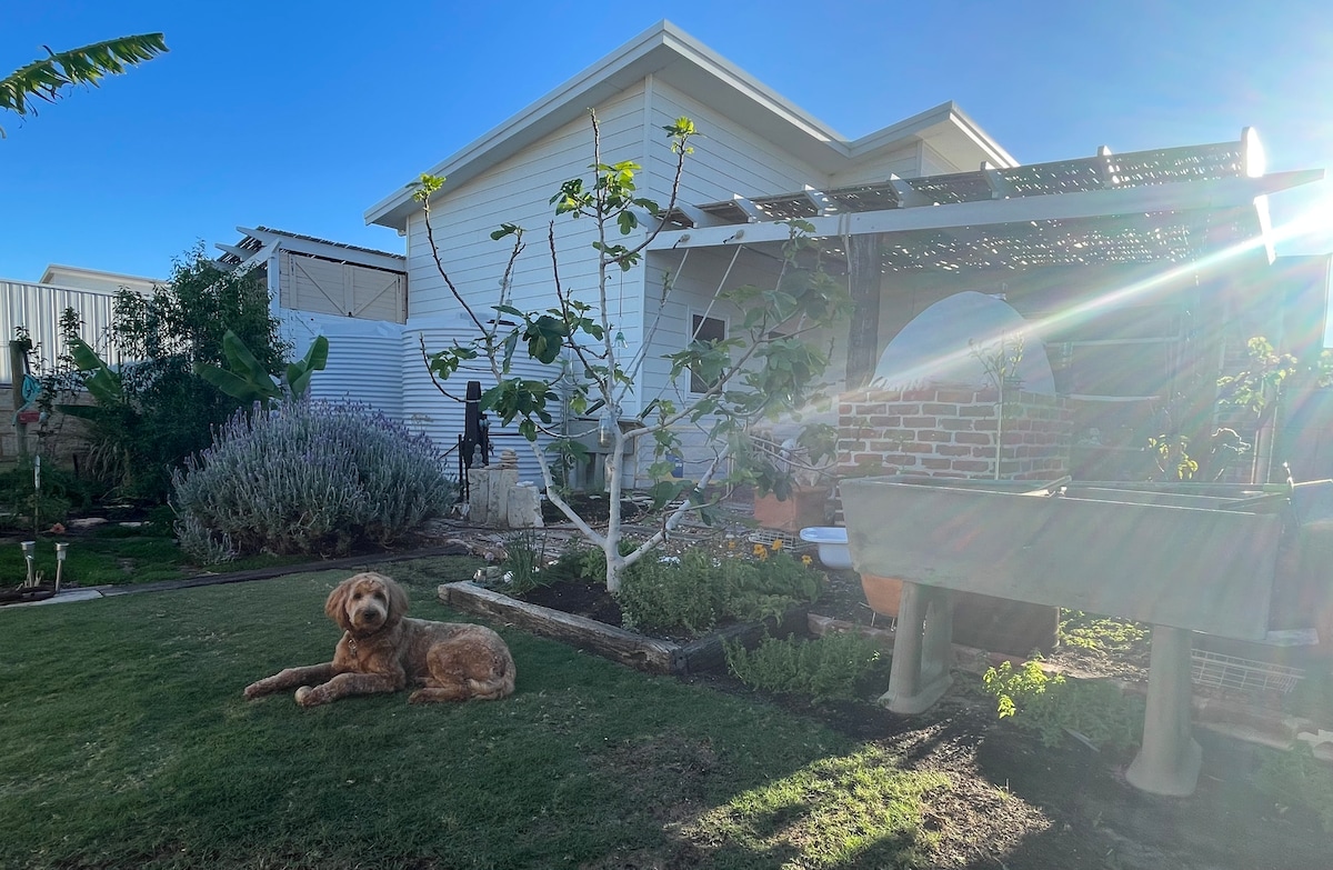 Take it easy at this unique and tranquil getaway. This roomy studio guest house with comfortable queen bed is set in beautiful gardens at the rear of our home. Geraldton CBD is a 10 minute drive. Watch a beautiful sunset at the beach or walk along the river, all this just a 14 minute stroll away. There is a kitchenette with a fridge, microwave & air fryer plus an outdoor BBQ available by request. Note: No laundry facilities available. 2.3m height restriction on parking for boats & trailers