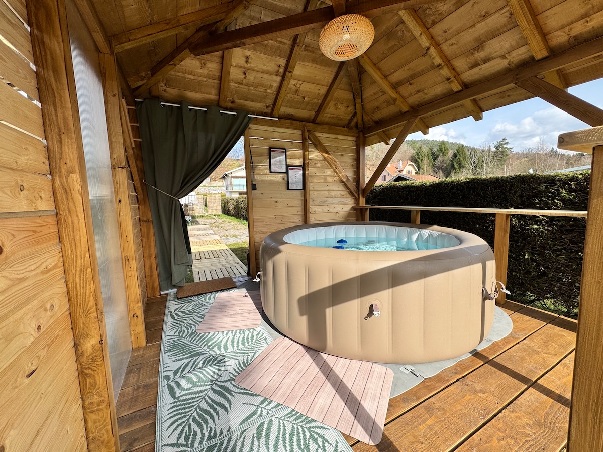 La Cabane de Lulu, nichée sur les hauteurs de Bussang. Ce charment chalet offre un cadre paisible où vous pourrez profiter d'un séjour détente. Entouré d'un parc animalier abritant chèvres et poneys, véritable paradis vert. Vous pourrez vous détendre dans le Hot Tub, tout en admirant la vue. Le chemin d'accès est raide mais entièrement goudronné, vous pourrez vous garez juste devant le chalet. Veuillez noter qu'en hiver, il faut se garer à 80 m de l'entrée en raison du risque de verglas.