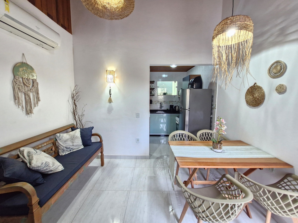 Casinha linda e recém reformada. Tudo novinho e com um projeto simples, buziano e aconchegante. A localização é ótima pra quem adora a praia de Geribá. Em 1 minuto caminhando já estamos com pé na areia! Temos barraca e cadeiras de praia. A casa possui 1 suíte, 1 quarto triplo, sala com cozinha americana, varanda e um espaçoso jardim atrás da casa. Nossa velha casinha de pescador se renovou e é um sonho realizado ter ela tão gostosa para receber nossos hóspedes. Preparamos sempre o melhor você