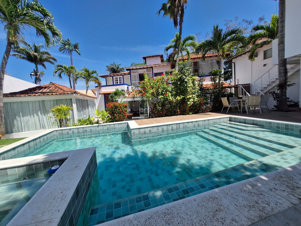 Enjoy this stylish and comfortable spot with your family at Manguinhos Beach, right on the sand. Take a short walk along the beach to reach a trail that leads to Tartaruga Beach, a beautiful destination, or stroll to Porto da Barra to enjoy the most popular restaurants in the area and relax with caipirinhas at sunset. For children, besides the heated pool and lawn, there is easy beach access from the house and even a small soccer field less than a five-minute walk away.