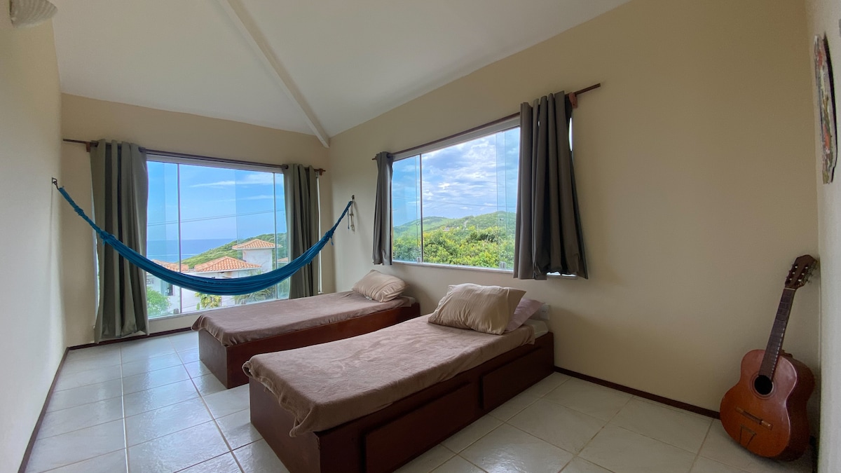 Casa em condomínio exclusivo em João Fernandes, com vista fascinante para o mar e para o nascer do sol. Localizada a poucos metros da praia de João Fernandinho, oferece uma experiência única de conforto e contemplação. O condomínio conta com excelente infraestrutura, incluindo piscina compartilhada com vista para o mar e para o pôr do sol, sauna, churrasqueira e salão de jogos. Casa completa e equipada, ideal para famílias e grupos de amigos de até 8 pessoas que buscam tranquilidade e conforto.